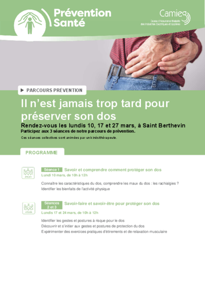 Il n'est jamais trop tard pour préserver son dos ! A Saint Berthevin, à partir du lundi 10 mars