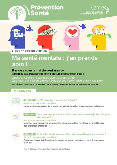 Parcours de prévention : « Ma santé mentale : j’en prends soin ! », à partir du 13 novembre, en visioconférence